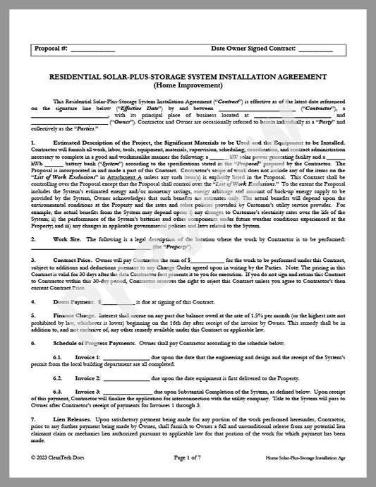 Explore our collection of legal documents tailored for companies in the renewable-plus-storage industry, including solar-plus-storage and other essential technologies. These documents cover the sale, purchase, development, licensing, manufacture, ownership, operation, and maintenance of renewable plus storage systems and their related products, technologies, and services.